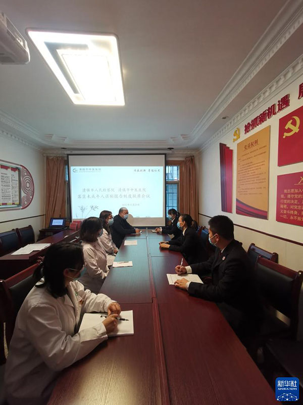 12月16日,貴州省清鎮(zhèn)市檢察機(jī)關(guān)與醫(yī)療機(jī)構(gòu)召開聯(lián)席會議,研究推進(jìn)醫(yī)療機(jī)構(gòu)落實(shí)侵害未成年人案件強(qiáng)制報告制度。新華社發(fā)(杜遠(yuǎn)敏 攝)