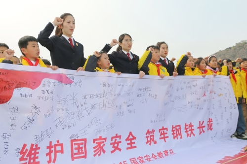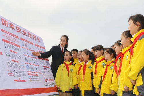 2021年4月13日,江蘇省連云港市灌云縣實(shí)驗(yàn)小學(xué),檢察官在進(jìn)行“全民國(guó)家安全教育日”普法宣傳活動(dòng)。國(guó)家安全日來臨,江蘇省連云港市灌云縣檢察院進(jìn)入校園開展“全民國(guó)家安全教育日”普法宣傳活動(dòng),把國(guó)家安全相關(guān)知識(shí)、維護(hù)國(guó)家安全意識(shí)以及總體國(guó)家安全觀植入學(xué)生們心中。