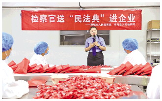 為精準提供法律服務(wù),護航民營企業(yè)發(fā)展,近日,山東省聊城市人民檢察院與東阿縣人民檢察院干警聯(lián)合走進東阿古膠阿膠有限公司包裝車間,為全體職工講授民法典知識。