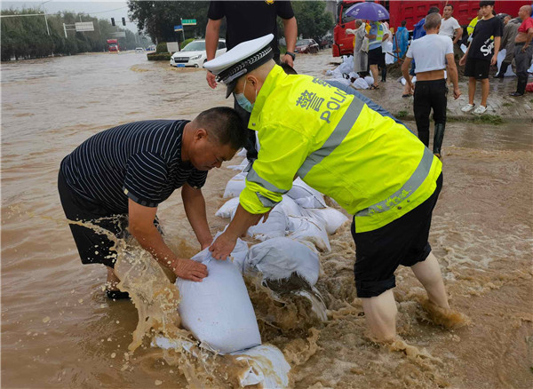 8月12日,孝感城區(qū)多條道路積水嚴(yán)重。孝感公安交警立即轉(zhuǎn)為“多功能服務(wù)隊(duì)”,開展路面巡控、疏導(dǎo)和救援。
