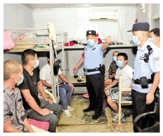 圖為8月21日夜,民警對(duì)市區(qū)上游常莊水庫(kù)周?chē)用襁M(jìn)行勸說(shuō)轉(zhuǎn)移。