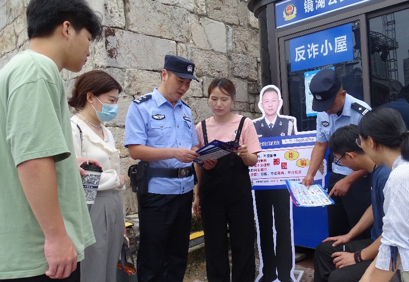 9月15日,國家網(wǎng)絡(luò)安全宣傳周期間,安徽省蕪湖市公安局鏡湖分局東門派出所組織開展“網(wǎng)絡(luò)安全為人民,網(wǎng)絡(luò)安全靠人民”活動。民警來到轄區(qū)古城景區(qū)向群眾進(jìn)行網(wǎng)絡(luò)安全教育和反電信網(wǎng)絡(luò)詐騙宣傳,提高大家網(wǎng)絡(luò)安全防范意識。