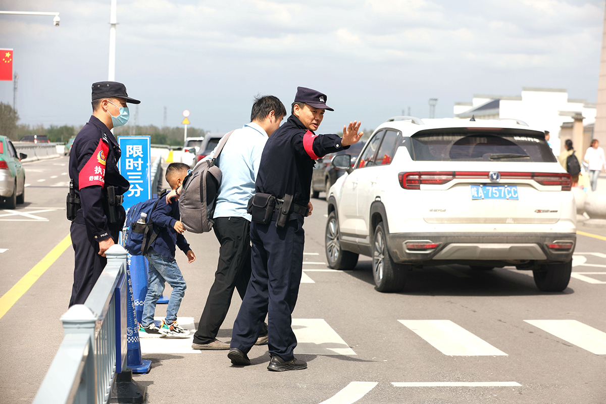 10月6日,安徽省舒城縣公安局千人橋派出所舒城高鐵東站警務站民輔警在疏導交通、服務旅客出行。當天是中秋國慶假期最后一天,迎來返程旅客高峰。警務站全員上崗,及時做好車流、旅客引導,確保旅客返程平安。