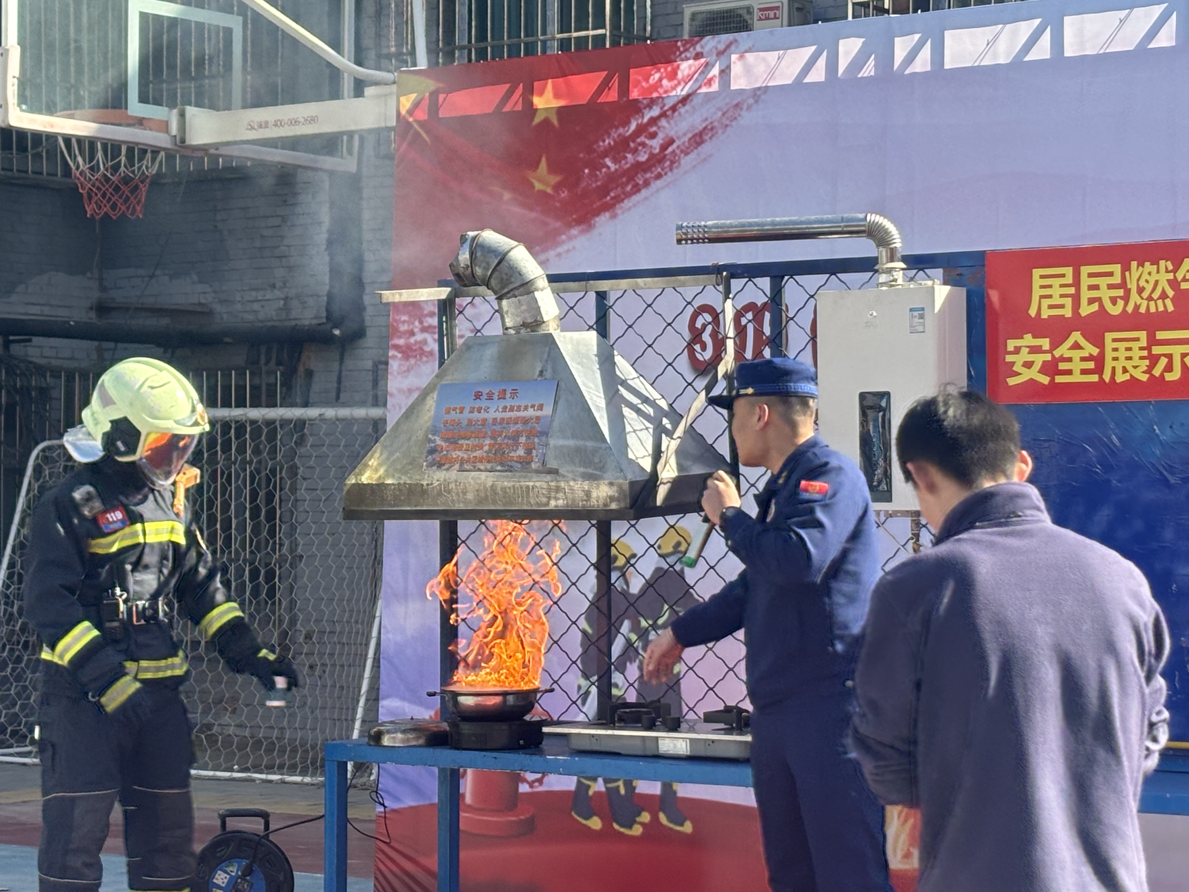圖為消防人員進(jìn)行廚房火災(zāi)演示。