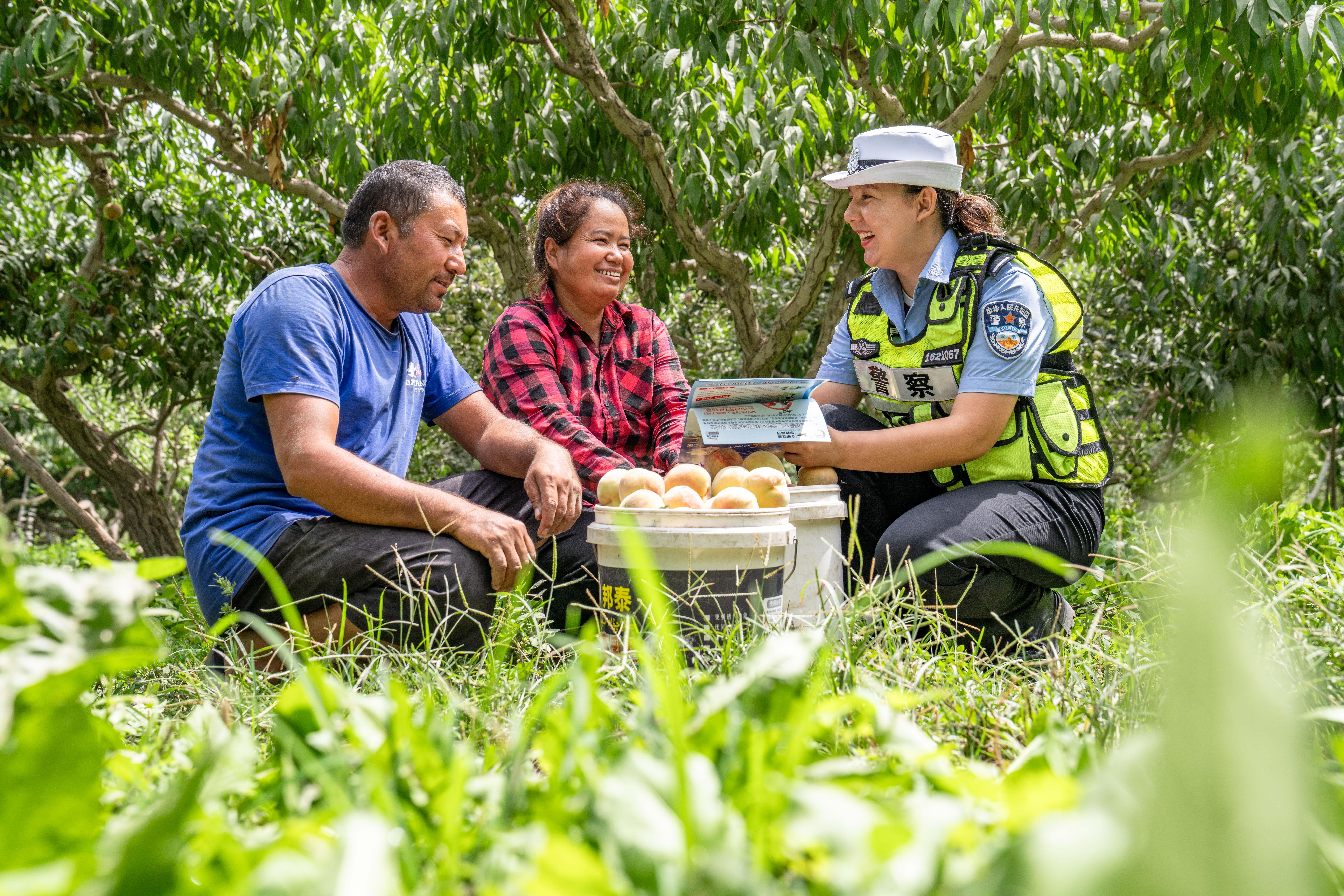 7月26日,新疆葉城縣公安局結(jié)合夏季治安特點,通過矛盾糾紛排查、安全防范宣講、助農(nóng)服務(wù),深耕“果園警務(wù)”,以實際行動護航“甜蜜經(jīng)濟”。民輔警挽起袖子,加入到群眾的勞作之中。他們有的幫助群眾采摘成熟的果實,有的小心翼翼的將果實放進包裝箱,有的幫忙搬運箱子,將豐收的喜悅進行傳遞。