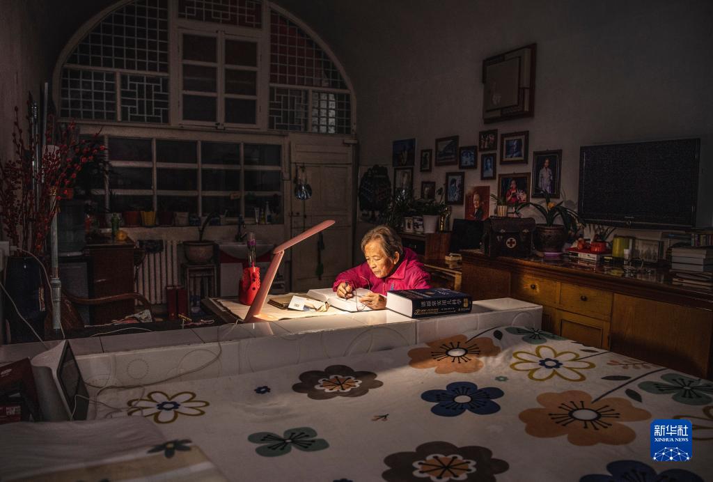 路生梅在窯洞里挑燈學習(2022年9月16日攝)。新華社記者 陶明 攝