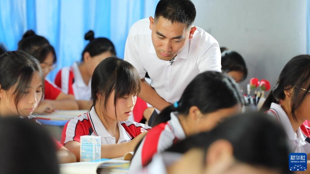 貴州省望謨縣實驗高中黨總支副書記、副校長劉秀祥在課上輔導學生(2022年8月26日攝)。新華社記者 周宣妮 攝