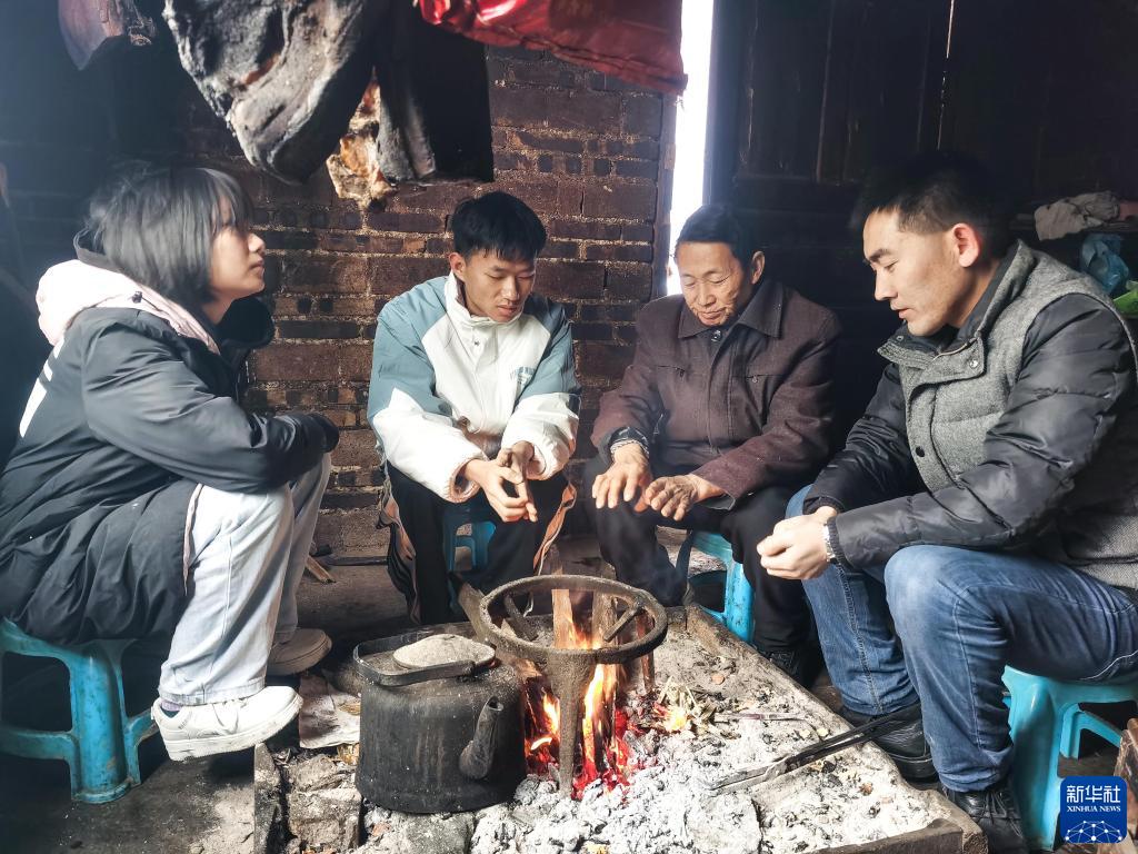 貴州省望謨縣實驗高中黨總支副書記、副校長劉秀祥(右一)在學生家中家訪(2022年2月1日攝)。新華社發(fā)