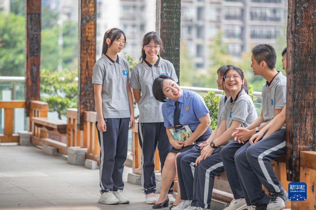 9月20日,在重慶市第三十七中學(xué),梅玫與學(xué)生在課間交流。新華社記者 黃偉 攝