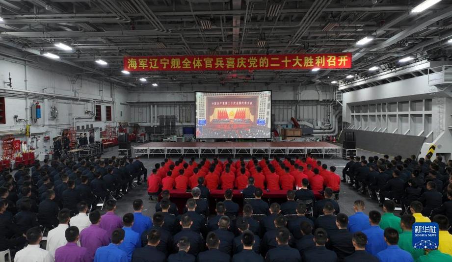 10月16日,遼寧艦全體官兵收看中國(guó)共產(chǎn)黨第二十次全國(guó)代表大會(huì)開幕會(huì)。新華社發(fā)(任澤霖 攝)