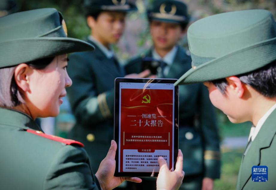10月17日,武警重慶總隊(duì)執(zhí)勤第一支隊(duì)組織官兵學(xué)習(xí)黨的二十大報(bào)告。新華社發(fā)(唐志勇 攝)