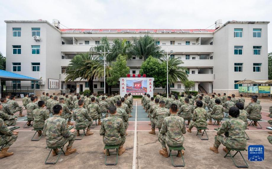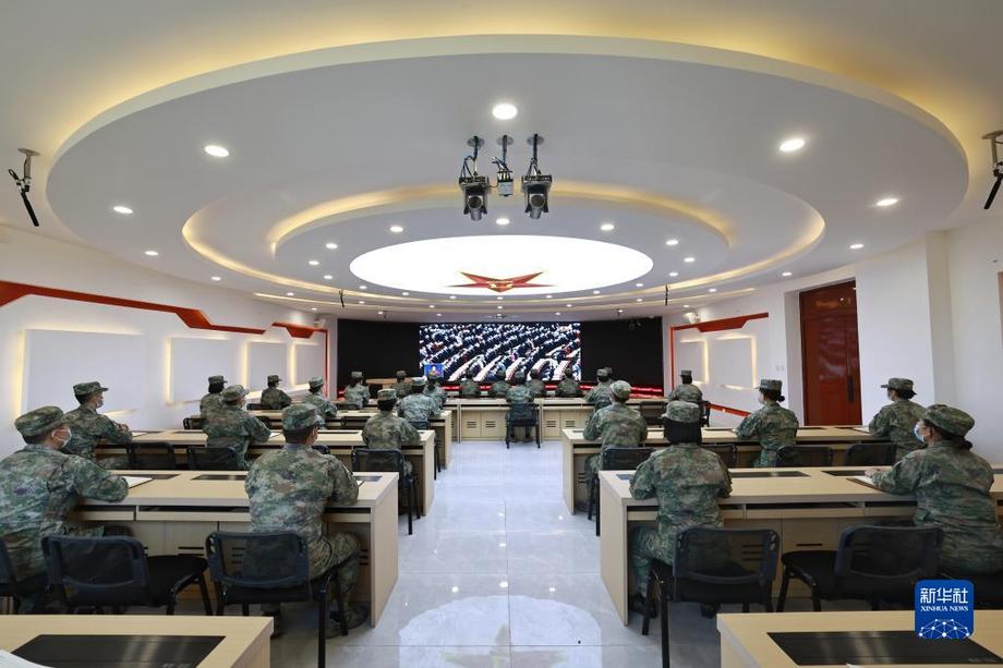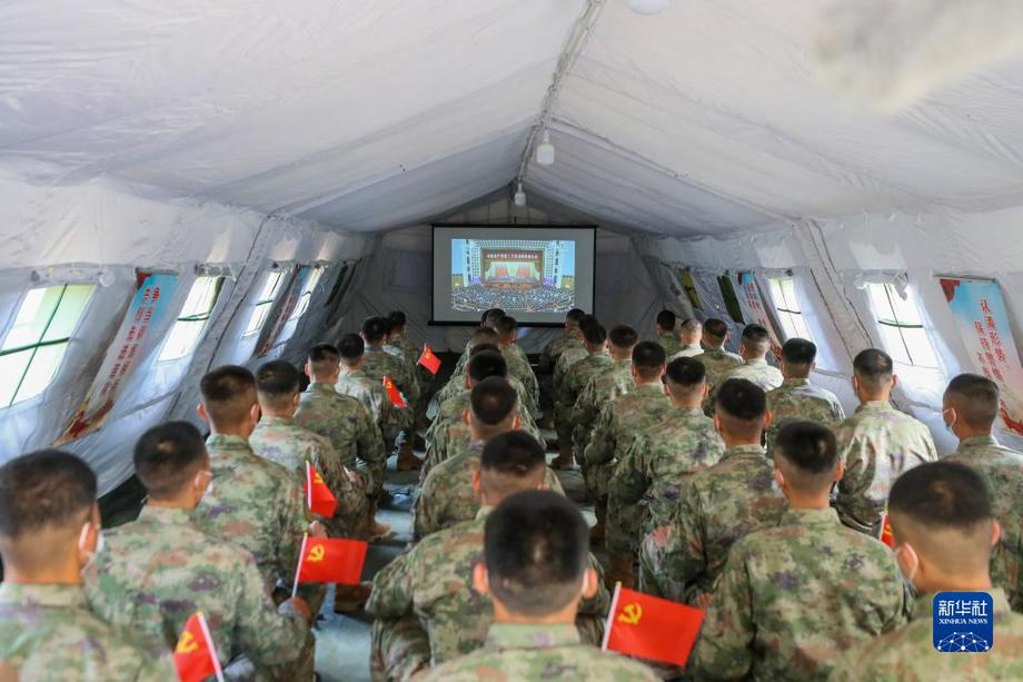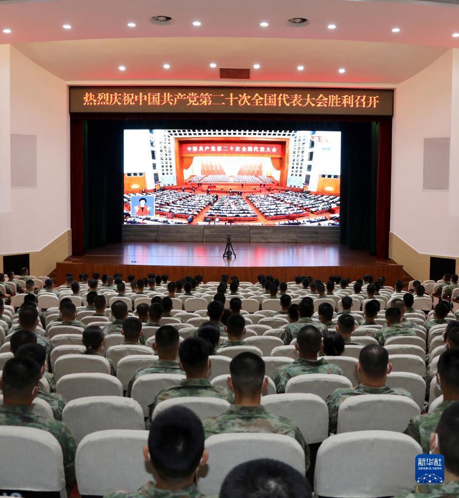 10月16日,中部戰(zhàn)區(qū)陸軍第82集團(tuán)軍某旅官兵收看中國(guó)共產(chǎn)黨第二十次全國(guó)代表大會(huì)開幕會(huì)。新華社發(fā)(徐超 攝)