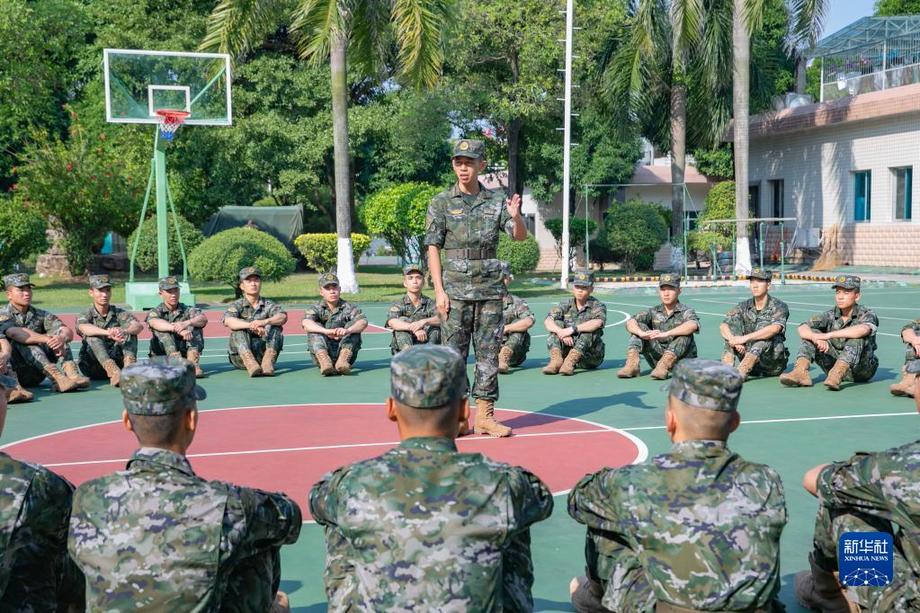 10月18日,武警廣西總隊(duì)機(jī)動(dòng)支隊(duì)組織官兵學(xué)習(xí)黨的二十大報(bào)告。新華社發(fā)(劉明 攝)