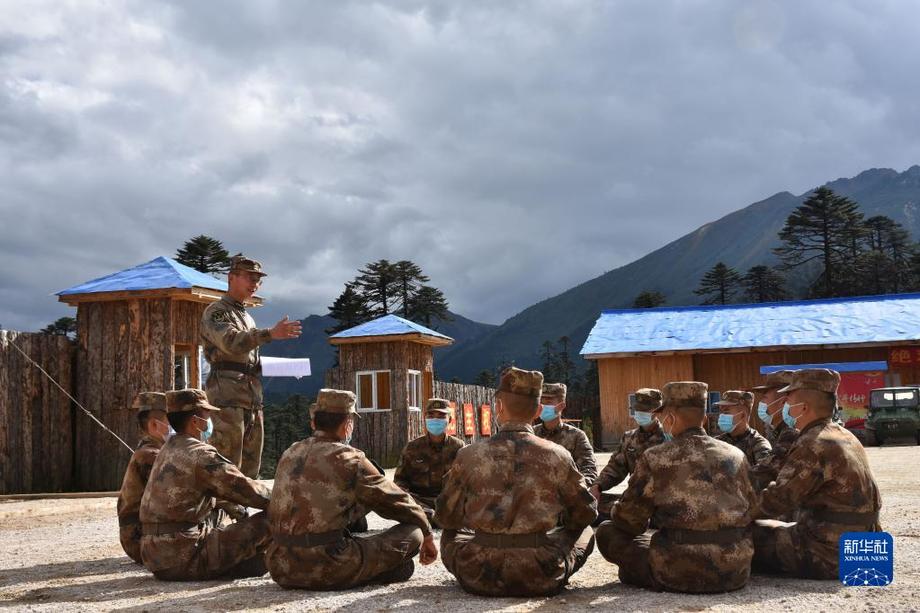 10月17日,西藏林芝軍分區(qū)“墨脫戍邊模范營(yíng)”組織官兵學(xué)習(xí)黨的二十大報(bào)告。新華社發(fā)(游毅 攝)