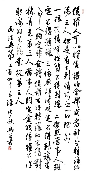 當事人約定非金錢債權(quán)不得轉(zhuǎn)讓的,不得對抗善意第三人。當事人約定金錢債權(quán)不得轉(zhuǎn)讓的,不得對抗第三人。