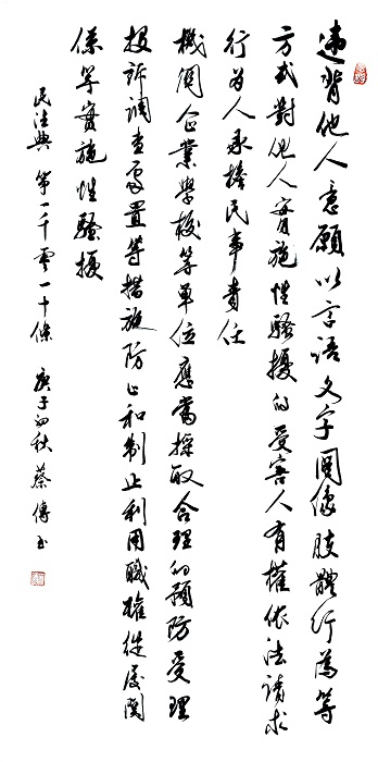 “書·法”活動(dòng)以書寫《中華人民共和國(guó)民法典》法條開(kāi)筆,未來(lái)將對(duì)準(zhǔn)更多的法律。