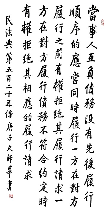 民法典第五百二十五條 當(dāng)事人互負(fù)債務(wù),沒(méi)有先后履行順序的,應(yīng)當(dāng)同時(shí)履行。一方在對(duì)方履行之前有權(quán)拒絕其履行請(qǐng)求。一方在對(duì)方履行債務(wù)不符合約定時(shí),有權(quán)拒絕其相應(yīng)的履行請(qǐng)求。