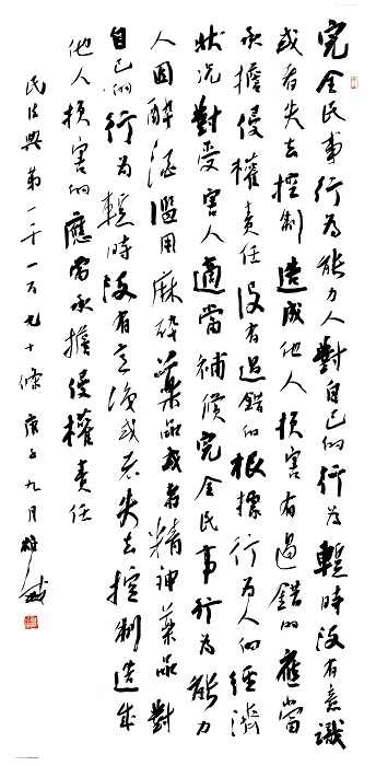 “書·法”活動(dòng)以書寫《中華人民共和國民法典》法條開筆,未來將對(duì)準(zhǔn)更多的法律。