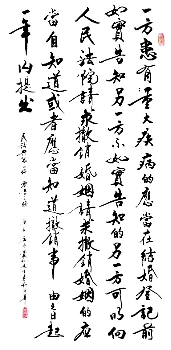 民法典第一千零五十三條 一方患有重大疾病的,應(yīng)當在結(jié)婚登記前如實告知另一方;不如實告知的,另一方可以向人民法院請求撤銷婚姻。