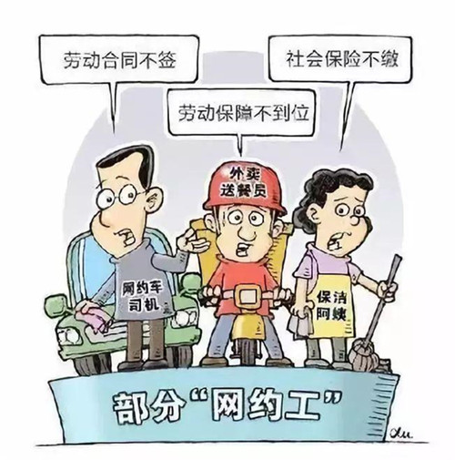 “網(wǎng)約工”打破了原來的“公司+員工”的模式,變成“平臺(tái)+個(gè)人”,大部分“網(wǎng)約工”以靈活、彈性、平臺(tái)、共享等就業(yè)形式存在,他們與互聯(lián)網(wǎng)平臺(tái)的法律關(guān)系較難界定。一些不具備法定意義上的勞動(dòng)合同關(guān)系,如一些網(wǎng)約平臺(tái)上的快遞騎手,當(dāng)中有相當(dāng)一部分人員是以“兼職”的身份存在于“網(wǎng)約”的雇傭關(guān)系里。這也讓“網(wǎng)約工”這一新興群體游離于傳統(tǒng)的工傷保險(xiǎn)制度以外,缺乏相應(yīng)的保障。