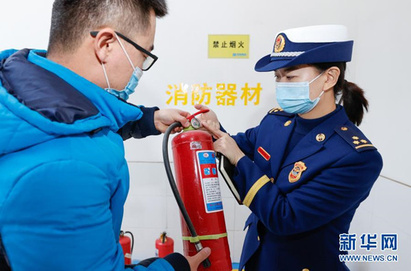 2月1日,消防監(jiān)督檢查人員在購物商場內(nèi)對滅火器壓力進行檢查?!?/span>
