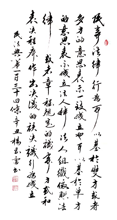 “書(shū)·法”活動(dòng)以書(shū)寫(xiě)《中華人民共和國(guó)民法典》法條開(kāi)筆,未來(lái)將對(duì)準(zhǔn)更多的法律。