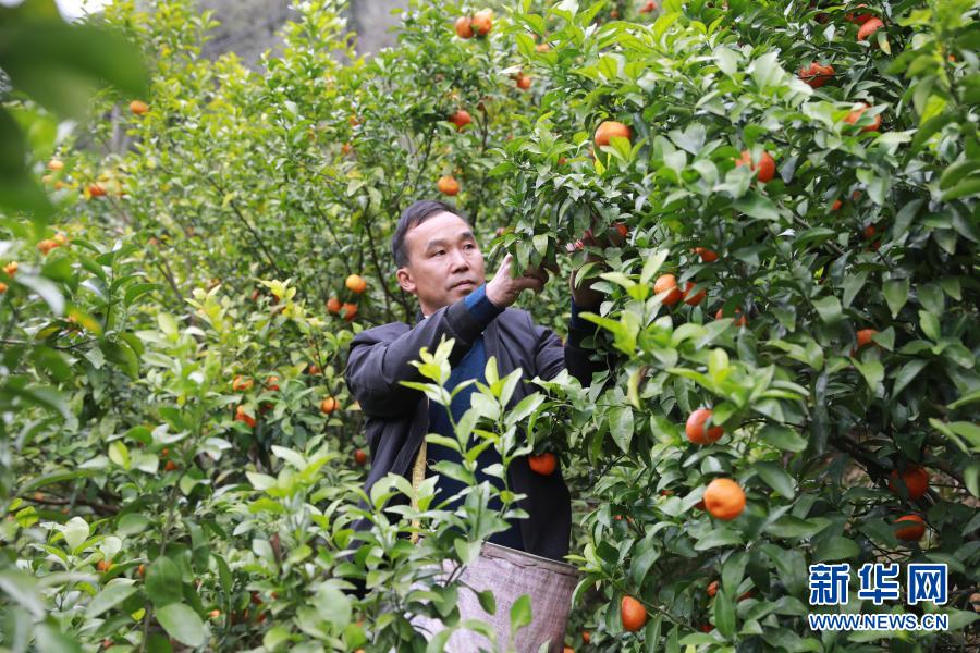廣西樂(lè)業(yè)縣新化鎮(zhèn)百坭村村民班統(tǒng)茂在果園里忙碌(2月18日攝)。新華社記者 梁舜 攝