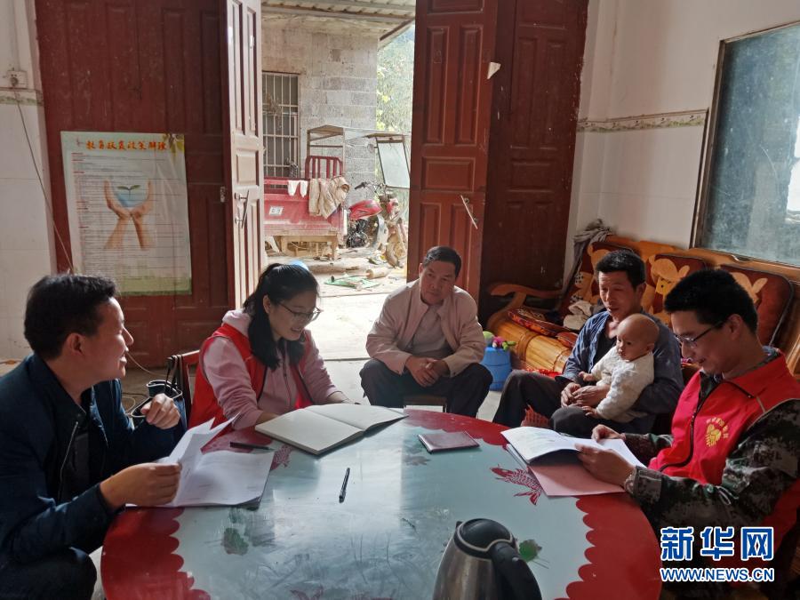 這是黃文秀(左二)生前下屯訪問(wèn)貧困戶的資料照片。新華社發(fā)