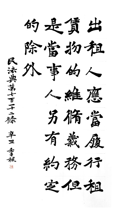 民法典第七百一十二條 出租人應當履行租賃物的維修義務,但是當事人另有約定的除外。