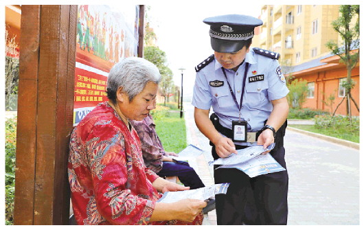 圖為修文縣公安局黨員民警向群眾宣傳安全知識(shí)。 吳觀石 攝