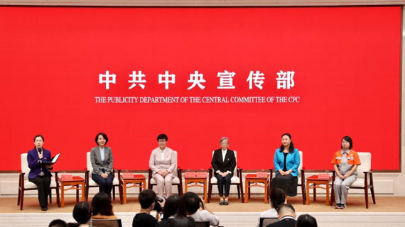 6月15日,中共中央宣傳部在北京舉行中外記者見(jiàn)面會(huì),邀請(qǐng)來(lái)自不同領(lǐng)域的女黨員代表,圍繞“巾幗心向黨,奮斗新征程”講述“她”力量。新華社記者 張玉薇 攝