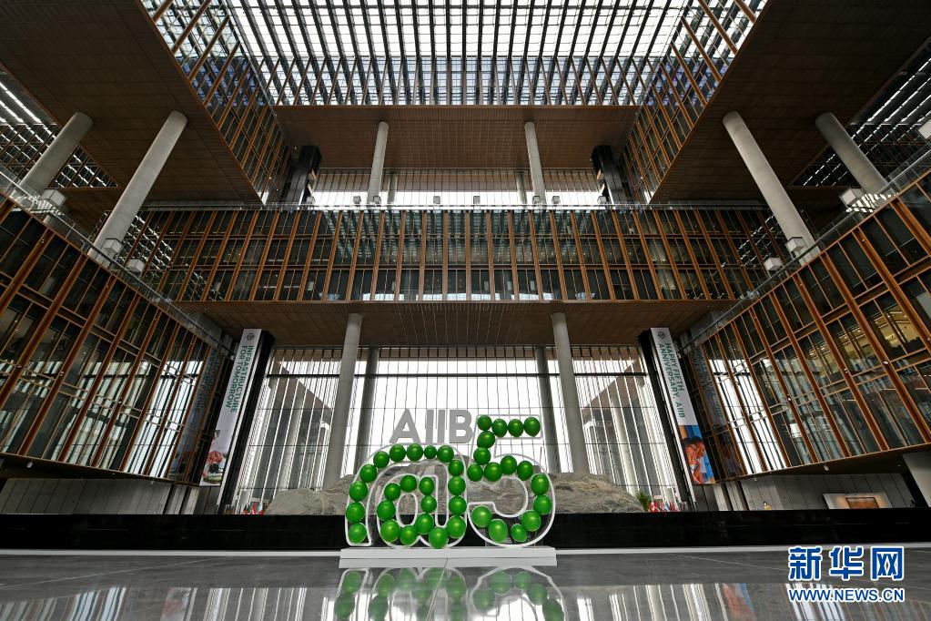 這是亞投行總部大樓內(nèi)景和慶祝正式開(kāi)業(yè)五周年裝飾(2021年1月13日攝)。新華社記者 李鑫 攝