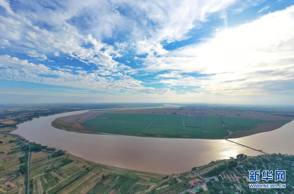 這是6月18日在河南省蘭考縣黃河灣風景區(qū)拍攝的黃河(無人機照片)。新華社發(fā)(李金雷 攝)