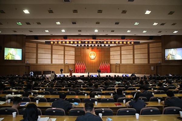 報告會還邀請了“老法院人”代表吳政祥講優(yōu)良傳統(tǒng)。吳政祥以生動的故事、質(zhì)樸的話語講述了他在湖南省法院審判一線不忘初心、牢記使命的奮斗歷程。他勉勵青年干警要樹立遠大理想和抱負,練就健康體魄,珍愛自己的職業(yè)、榮譽和家庭,珍惜國家和人民賦予的審判執(zhí)行權(quán)力,為湖南法院審判執(zhí)行事業(yè)高質(zhì)量發(fā)展貢獻力量,成為忠誠干凈擔當?shù)暮戏ㄔ鸿F軍中的一員。
