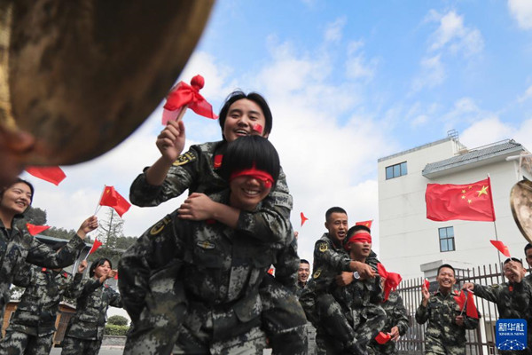 10月3日,武警貴州總隊(duì)貴陽支隊(duì)組織官兵開展文體活動。新華社發(fā)(蔣林岫 攝)