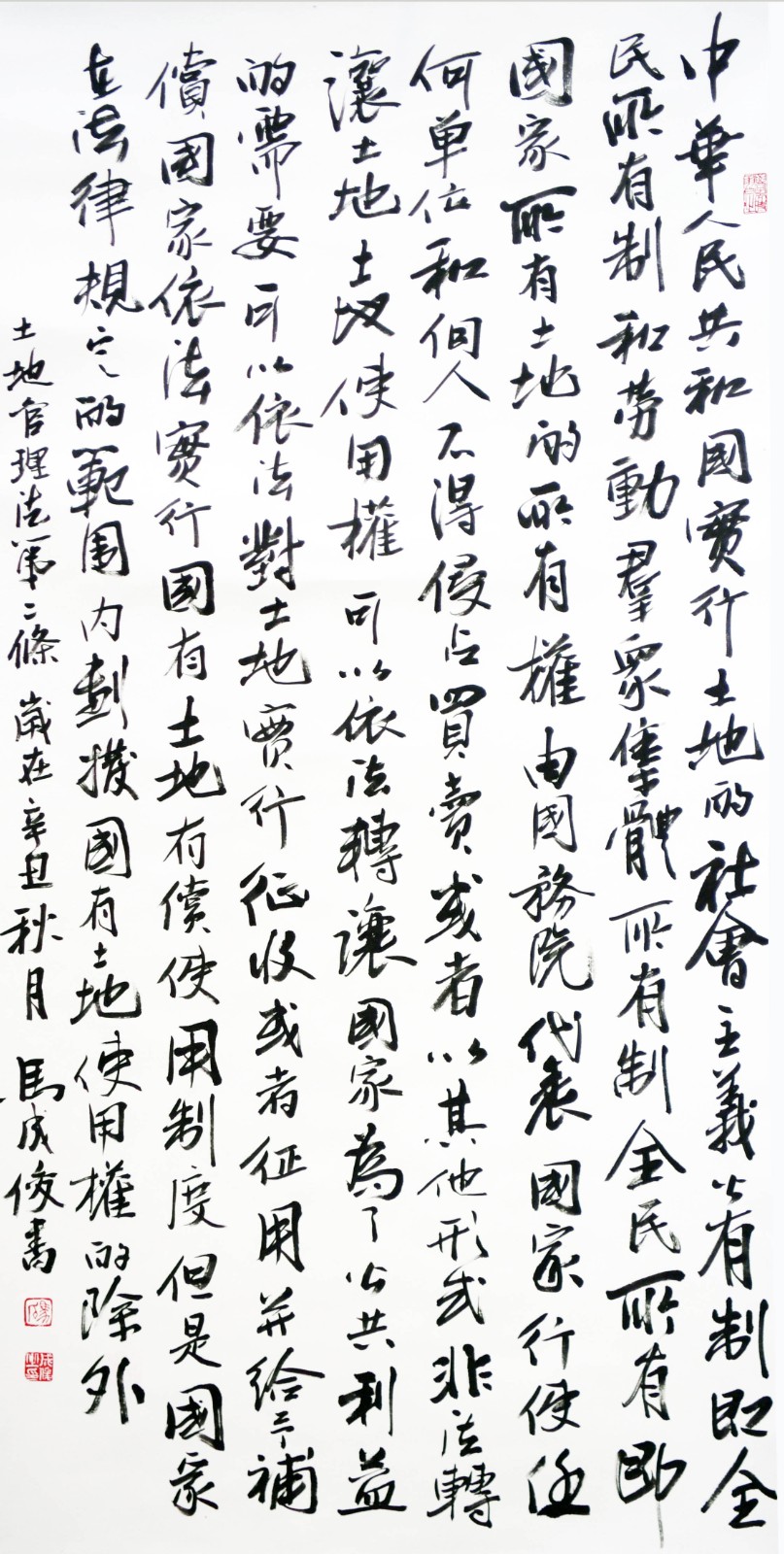 繼1600余位書(shū)法家參與書(shū)寫(xiě)《中華人民共和國(guó)民法典》全部1260條法條之后,法治日?qǐng)?bào)社聯(lián)合自然資源部法規(guī)司、自然資源部書(shū)畫(huà)研究會(huì)和北京昌平書(shū)法家協(xié)會(huì),將筆端對(duì)準(zhǔn)土地管理“一法一條例”,即《中華人民共和國(guó)土地管理法》和《中華人民共和國(guó)土地管理法實(shí)施條例》。
