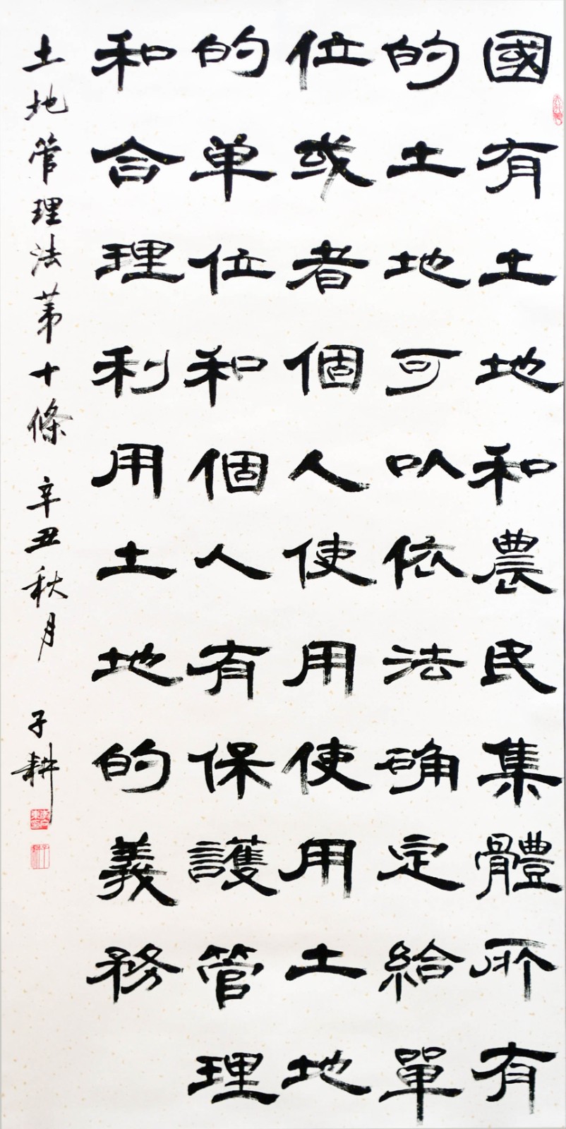 繼1600余位書法家參與書寫《中華人民共和國民法典》全部1260條法條之后,法治日報社聯合自然資源部法規(guī)司、自然資源部書畫研究會和北京昌平書法家協會,將筆端對準土地管理“一法一條例”,即《中華人民共和國土地管理法》和《中華人民共和國土地管理法實施條例》。