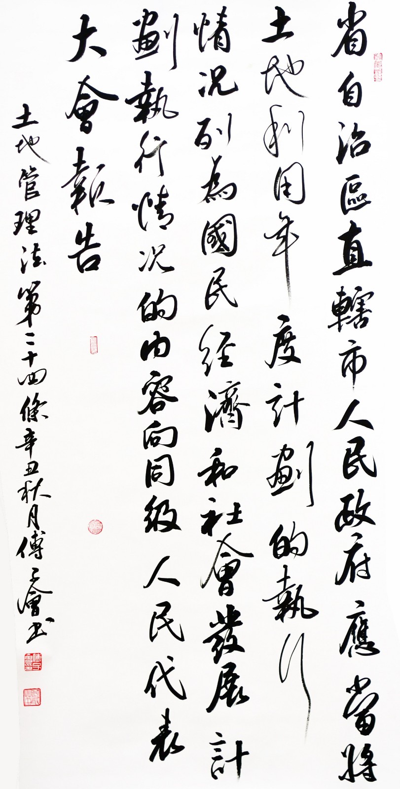 繼1600余位書法家參與書寫《中華人民共和國(guó)民法典》全部1260條法條之后,法治日?qǐng)?bào)社聯(lián)合自然資源部法規(guī)司、自然資源部書畫研究會(huì)和北京昌平書法家協(xié)會(huì),將筆端對(duì)準(zhǔn)土地管理“一法一條例”,即《中華人民共和國(guó)土地管理法》和《中華人民共和國(guó)土地管理法實(shí)施條例》。