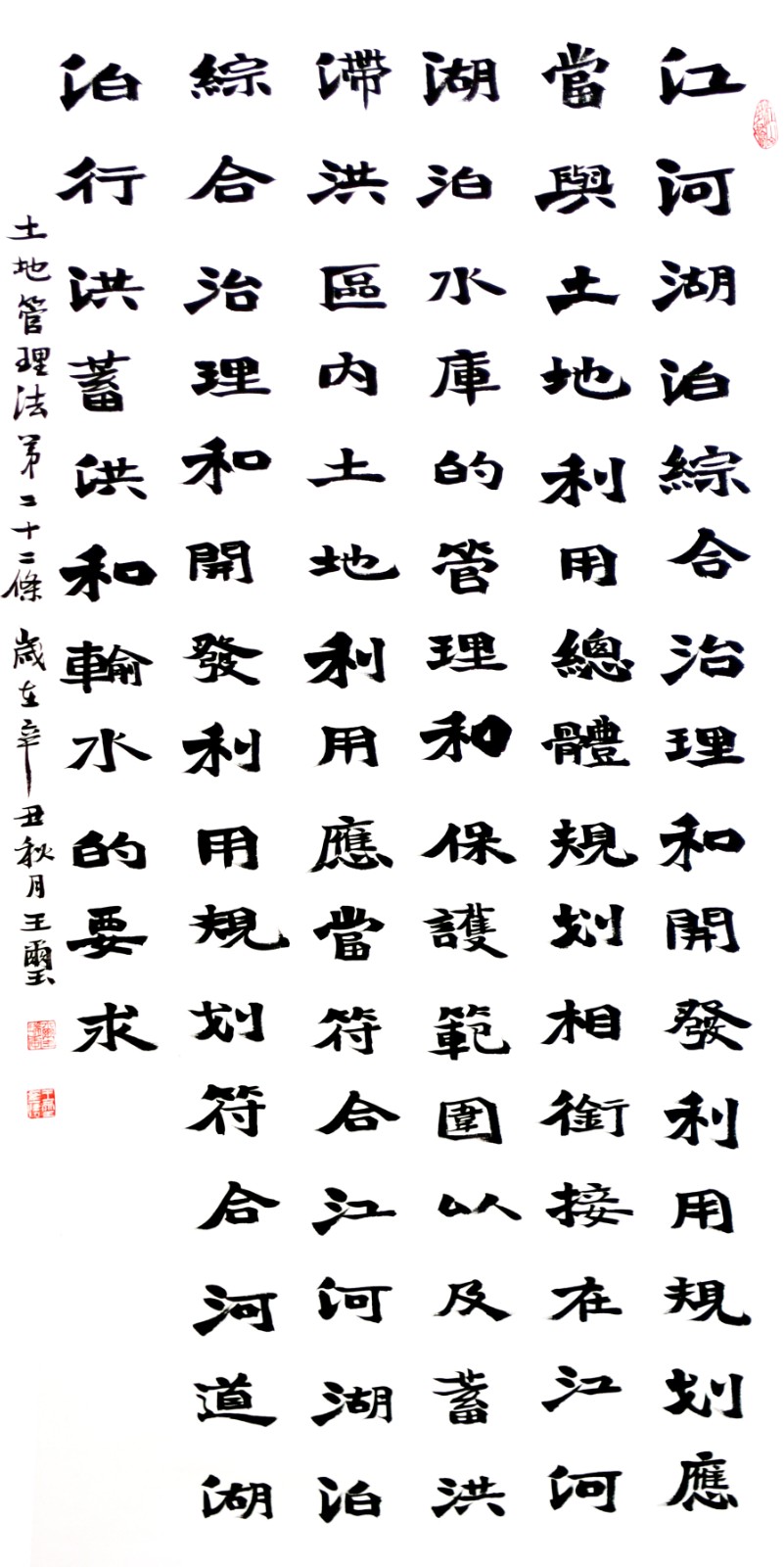 繼1600余位書法家參與書寫《中華人民共和國民法典》全部1260條法條之后,法治日報(bào)社聯(lián)合自然資源部法規(guī)司、自然資源部書畫研究會(huì)和北京昌平書法家協(xié)會(huì),將筆端對(duì)準(zhǔn)土地管理“一法一條例”,即《中華人民共和國土地管理法》和《中華人民共和國土地管理法實(shí)施條例》。