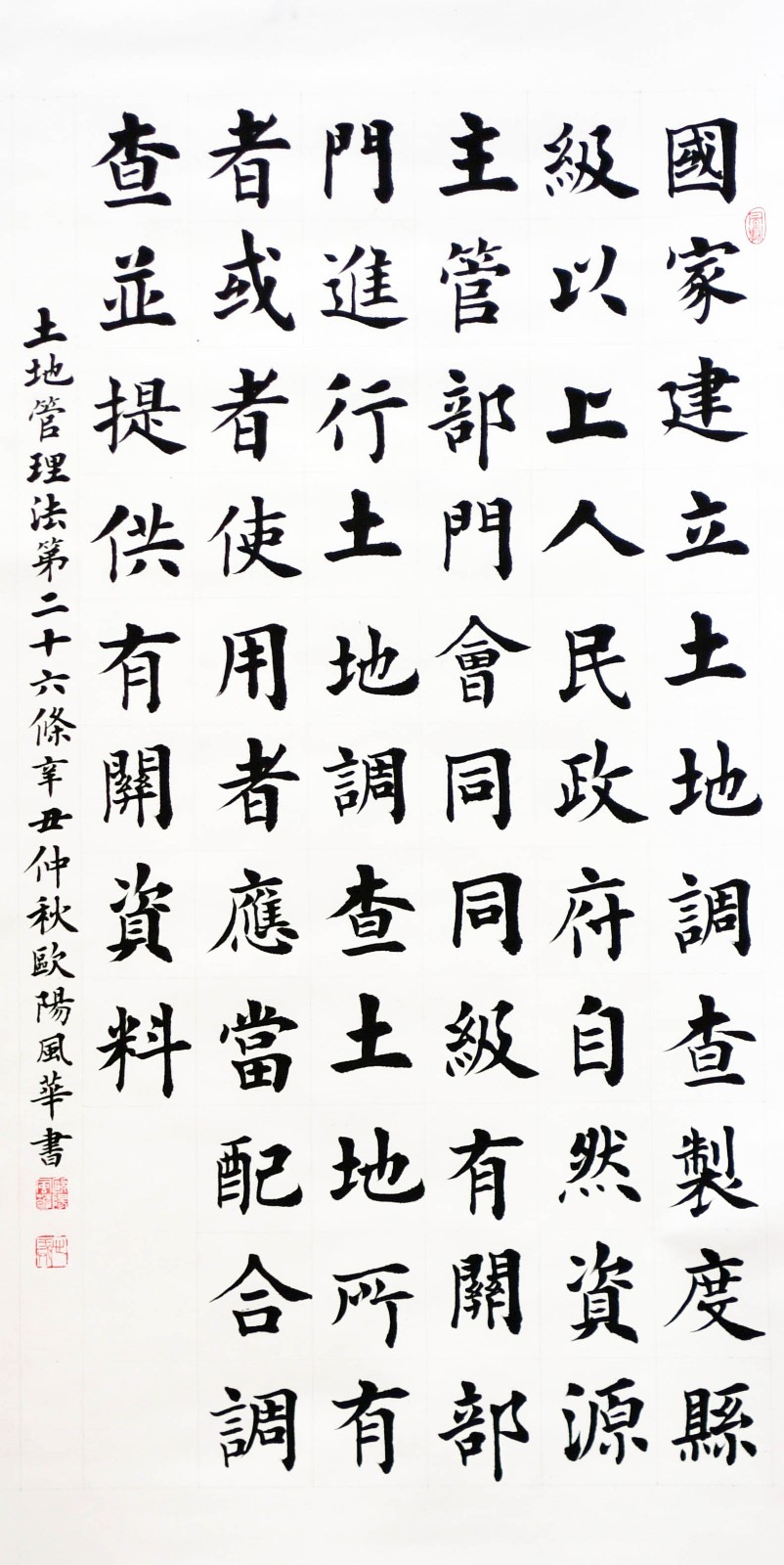 繼1600余位書法家參與書寫《中華人民共和國民法典》全部1260條法條之后,法治日報(bào)社聯(lián)合自然資源部法規(guī)司、自然資源部書畫研究會(huì)和北京昌平書法家協(xié)會(huì),將筆端對準(zhǔn)土地管理“一法一條例”,即《中華人民共和國土地管理法》和《中華人民共和國土地管理法實(shí)施條例》。
