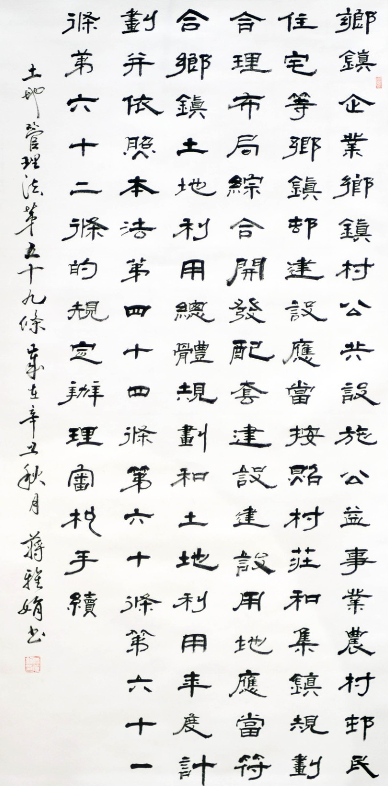 繼1600余位書(shū)法家參與書(shū)寫《中華人民共和國(guó)民法典》全部1260條法條之后,法治日?qǐng)?bào)社聯(lián)合自然資源部法規(guī)司、自然資源部書(shū)畫(huà)研究會(huì)和北京昌平書(shū)法家協(xié)會(huì),將筆端對(duì)準(zhǔn)土地管理“一法一條例”,即《中華人民共和國(guó)土地管理法》和《中華人民共和國(guó)土地管理法實(shí)施條例》。