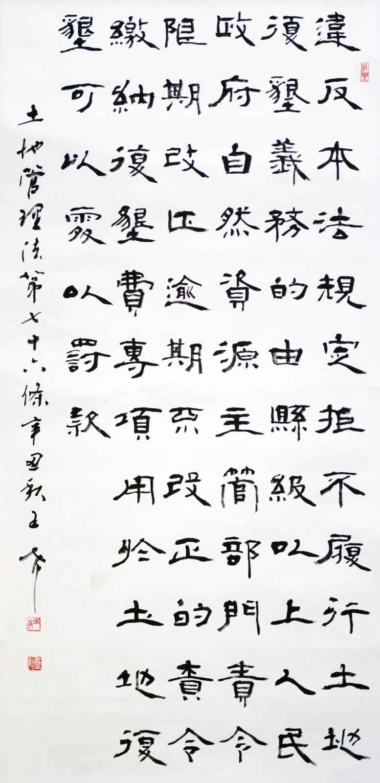 繼1600余位書(shū)法家參與書(shū)寫(xiě)《中華人民共和國(guó)民法典》全部1260條法條之后,法治日?qǐng)?bào)社聯(lián)合自然資源部法規(guī)司、自然資源部書(shū)畫(huà)研究會(huì)和北京昌平書(shū)法家協(xié)會(huì),將筆端對(duì)準(zhǔn)土地管理“一法一條例”,即《中華人民共和國(guó)土地管理法》和《中華人民共和國(guó)土地管理法實(shí)施條例》。