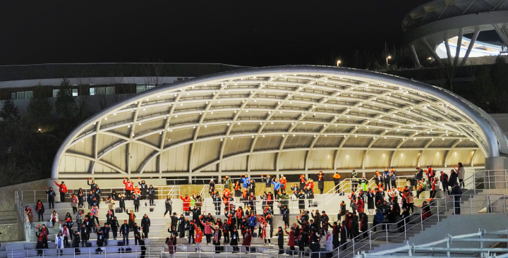 在北京2022年冬奧會和冬殘奧會延慶賽區(qū)核心區(qū)南區(qū)東部,延慶冬奧村(冬殘奧村)依山而建。11日上午,約360人組成的30個(gè)代表團(tuán)和1個(gè)觀察團(tuán)陸續(xù)抵達(dá)延慶冬奧村(冬殘奧村),開展“全要素”運(yùn)行測試。