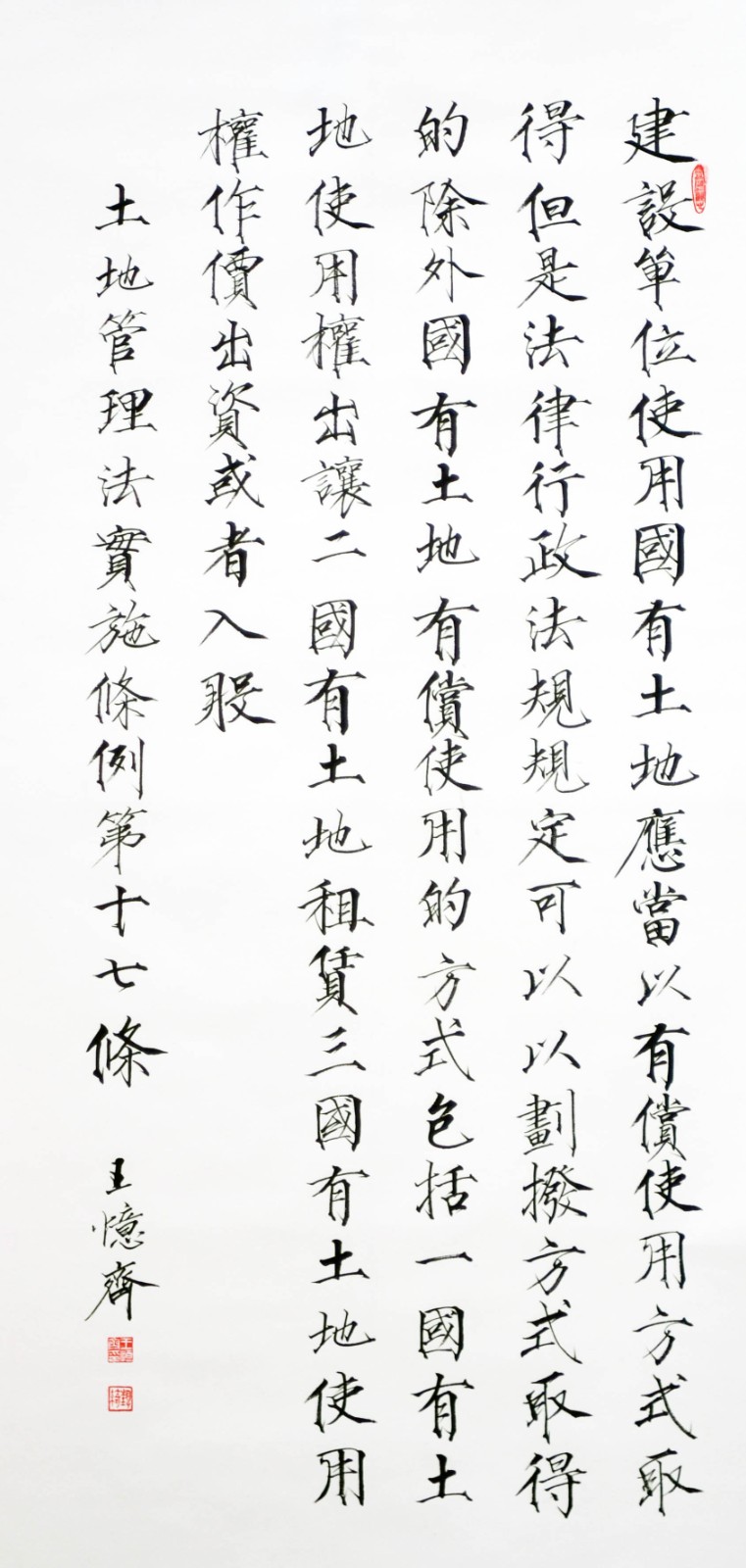 繼1600余位書法家參與書寫《中華人民共和國民法典》全部1260條法條之后,法治日報社聯(lián)合自然資源部法規(guī)司、自然資源部書畫研究會和北京昌平書法家協(xié)會,將筆端對準(zhǔn)土地管理“一法一條例”,即《中華人民共和國土地管理法》和《中華人民共和國土地管理法實施條例》。