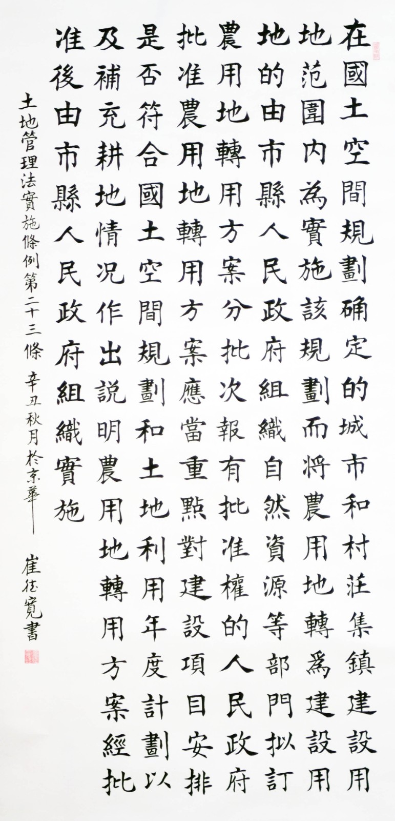 繼1600余位書(shū)法家參與書(shū)寫(xiě)《中華人民共和國(guó)民法典》全部1260條法條之后,法治日?qǐng)?bào)社聯(lián)合自然資源部法規(guī)司、自然資源部書(shū)畫(huà)研究會(huì)和北京昌平書(shū)法家協(xié)會(huì),將筆端對(duì)準(zhǔn)土地管理“一法一條例”,即《中華人民共和國(guó)土地管理法》和《中華人民共和國(guó)土地管理法實(shí)施條例》。