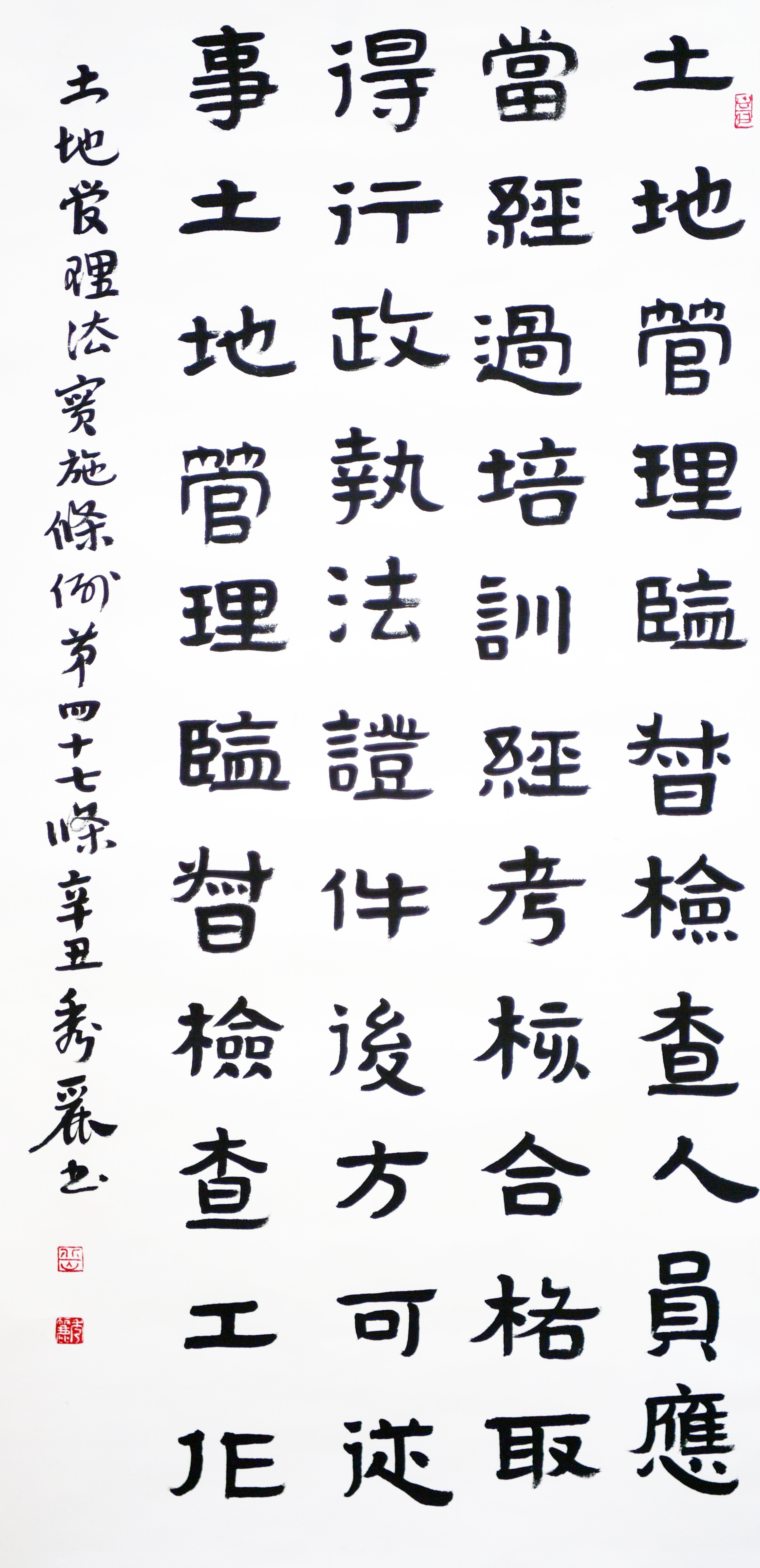 繼1600余位書法家參與書寫《中華人民共和國民法典》全部1260條法條之后,法治日報社聯(lián)合自然資源部法規(guī)司、自然資源部書畫研究會和北京昌平書法家協(xié)會,將筆端對準土地管理“一法一條例”,即《中華人民共和國土地管理法》和《中華人民共和國土地管理法實施條例》。