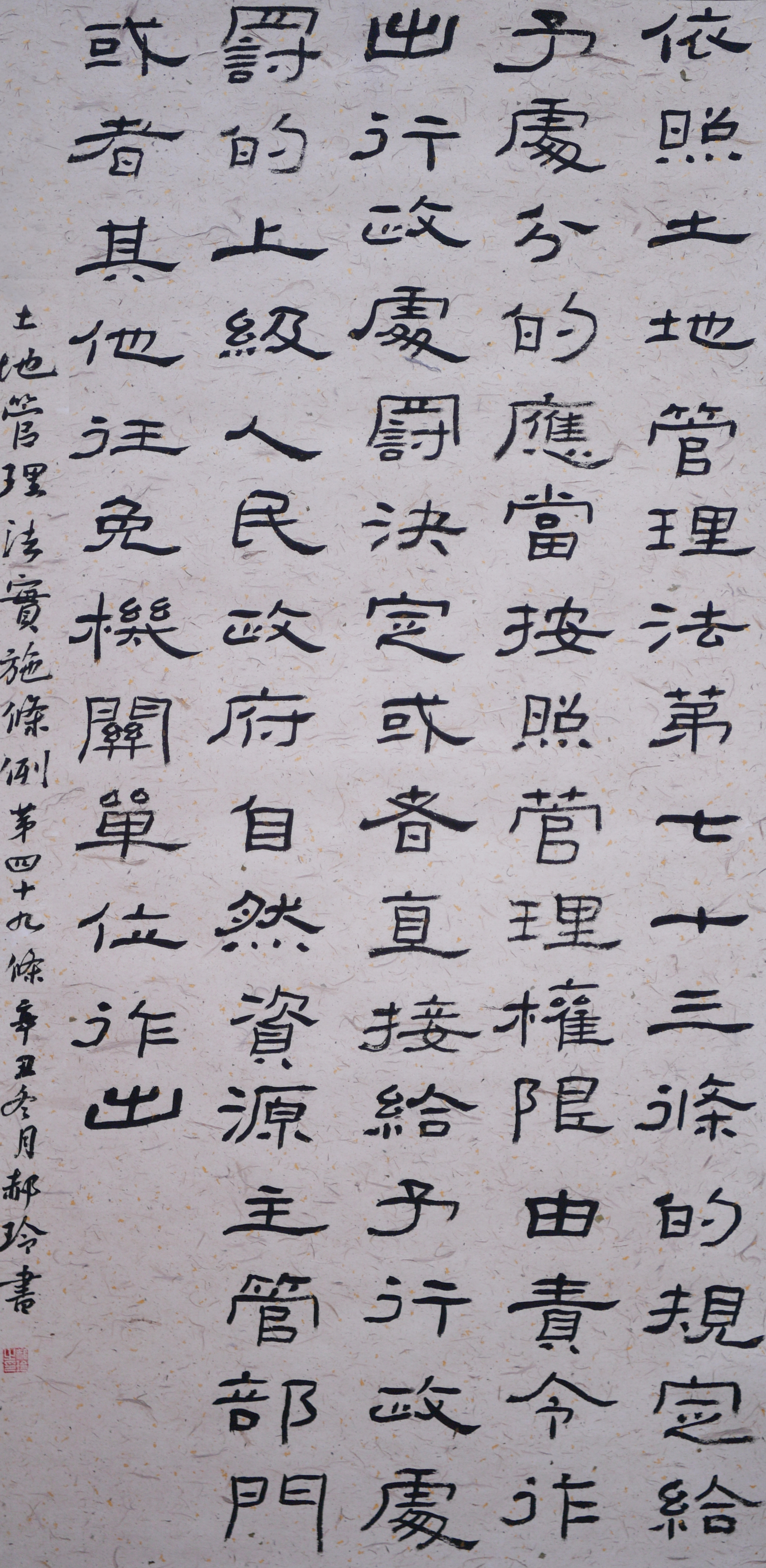 繼1600余位書法家參與書寫《中華人民共和國民法典》全部1260條法條之后,法治日報(bào)社聯(lián)合自然資源部法規(guī)司、自然資源部書畫研究會(huì)和北京昌平書法家協(xié)會(huì),將筆端對準(zhǔn)土地管理“一法一條例”,即《中華人民共和國土地管理法》和《中華人民共和國土地管理法實(shí)施條例》。