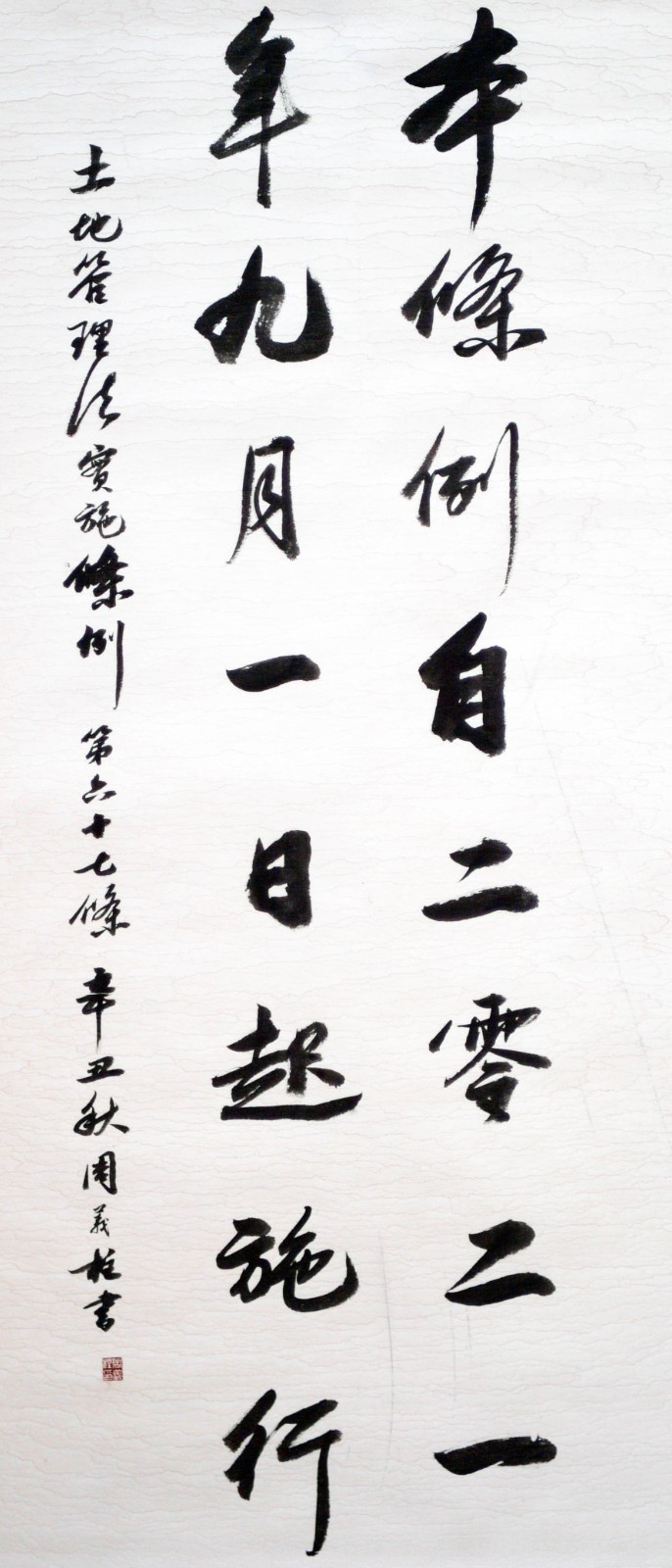 繼1600余位書法家參與書寫《中華人民共和國(guó)民法典》全部1260條法條之后,法治日?qǐng)?bào)社聯(lián)合自然資源部法規(guī)司、自然資源部書畫研究會(huì)和北京昌平書法家協(xié)會(huì),將筆端對(duì)準(zhǔn)土地管理“一法一條例”,即《中華人民共和國(guó)土地管理法》和《中華人民共和國(guó)土地管理法實(shí)施條例》。