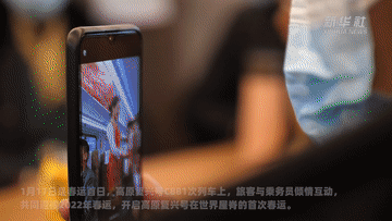 1月17日是春運首日,高原復興號C881次列車上,旅客與乘務員傾情互動,共同迎接2022年春運,開啟高原復興號在世界屋脊的首次春運。