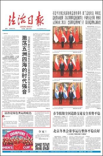 綠水青山就是金山銀山,冰天雪地也是金山銀山。綠色家園是人類的共同夢(mèng)想,生態(tài)文明建設(shè)關(guān)乎人類未來。綠色奧運(yùn)的意義不僅在于綠色辦奧,更重要的是傳播了“人與自然和諧共生”的理念,彰顯了運(yùn)用法治方式推動(dòng)實(shí)現(xiàn)綠色夢(mèng)想的無限潛力,這不僅有利于加強(qiáng)我國(guó)生態(tài)文明法治建設(shè),更有利于我們與世界各國(guó)一道踐行人類命運(yùn)共同體理念,為全球環(huán)境治理貢獻(xiàn)中國(guó)方案,實(shí)現(xiàn)“可持續(xù)、向未來”的發(fā)展愿景。